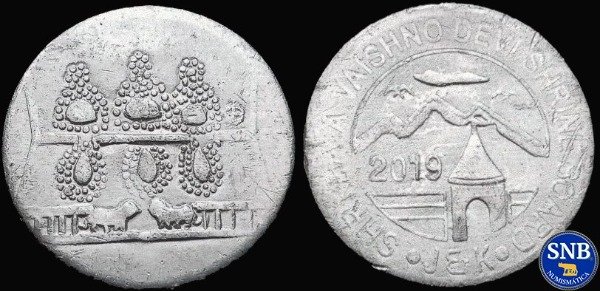 Estos tokens fueron emitidos para ser utilizados como regalo o souvenir a los visitantes del Templo Vaishno Devi en Jammu y Cachemira, India.