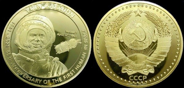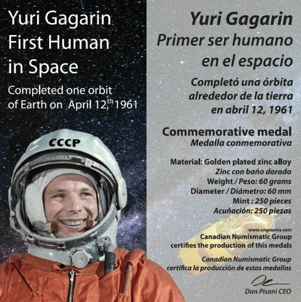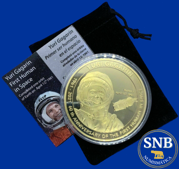 ENORME Y PESADA medalla conmemorativa del 50 Aniversario de la proeza del cosmonauta soviético Yuri Gagarin, el primer hombre en el espacio.