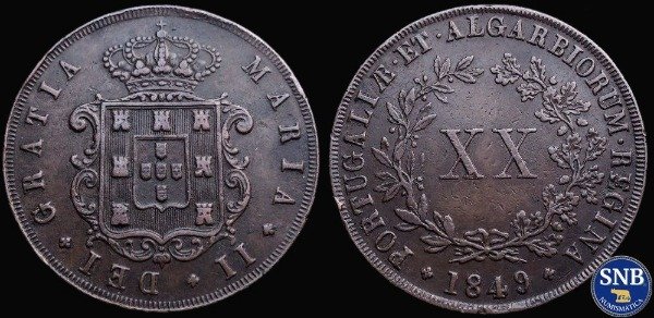 R/: PORTUGALÆ • ET • ALGARBIORUM • REX. Al centro, dentro de guirnalda: XX / 1874.