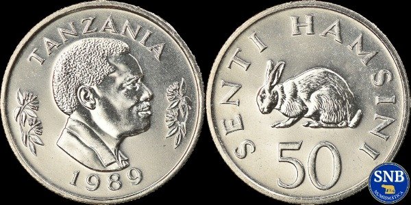 Retrato del Presidente Ali Hassan Mwinyi en su anverso. En reverso, un conejo a izquierda.