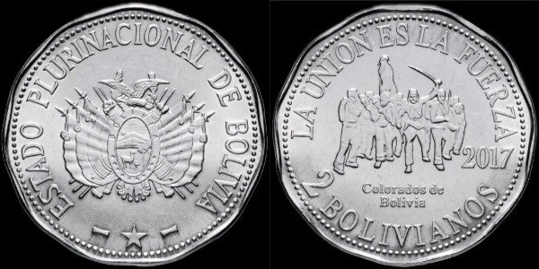 2 Bolivianos; 2017.