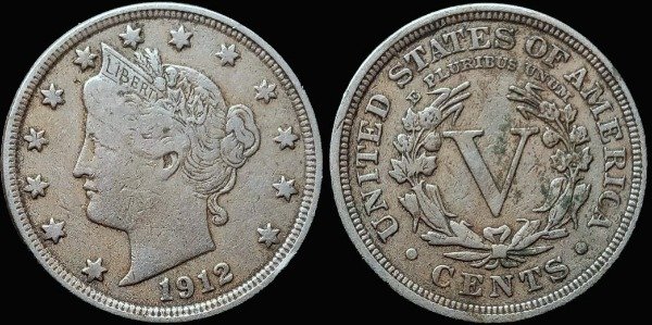 Cabeza de la Libertad a izquierda, rodeada por trece estrellas.