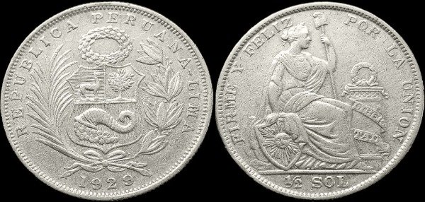 República, sosteniendo escudo y cetro con gorro de la Libertad, sentada a derecha.