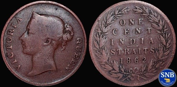 Entre 1858 y 1867, las Colonias del Estrecho (Singapur, Penang y Malaca) formaban parte del Gobierno de la India Británica. Tras la disolución de la Compañía Británica de las Indias Orientales en 1858, los territorios de la compañía, incluidas las Colonias del Estrecho, fueron transferidos al control directo de la Corona británica, pero aún bajo la administración del Gobierno de la India. Este estatus continuó hasta 1867, cuando las Colonias del Estrecho fueron separadas de la India y reorganizadas como una Colonia de la Corona autónoma, bajo la supervisión directa de la Oficina Colonial en Londres. - Las monedas de la India Británica para las Colonias del estrecho son bastante escasas.