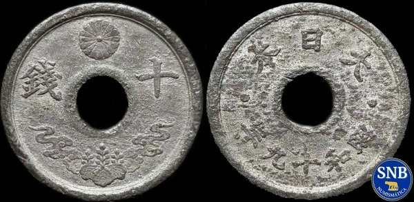 10 Sen; Showa 19 (=1944) - Estaño y zinc.