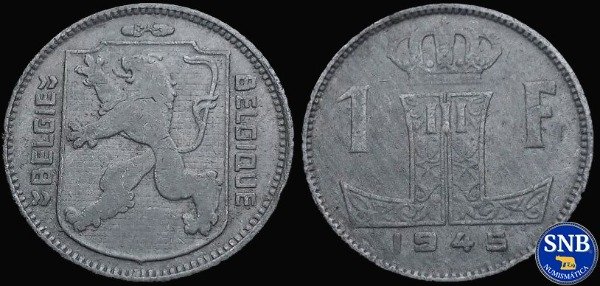 En el anverso, Escudo nacional con leyendas bilingües (BELGIE-BELGIQUE). En el reverso, Monograma coronado del rey Leopoldo III dividiendo la denominación.