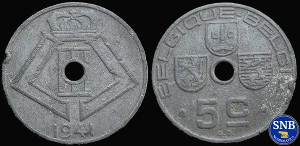En el anverso, escudos de armas de Bruselas, Mons y Brujas. Leyenda bilingüe: BELGIQUE-BELGIE. En el reverso, monograma real coronado.