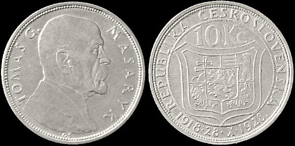 10° Aniversario de la Independencia. Retrato de Tomáš Masaryk, fundador de la República.