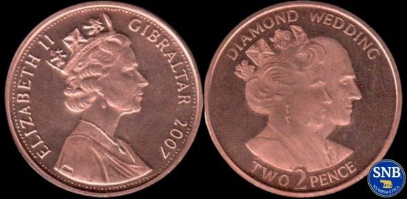 Conmemorativa: Bodas de Diamantes. Retratos conjugados de Isabel II y el Duque Felipe de Edimburgo.