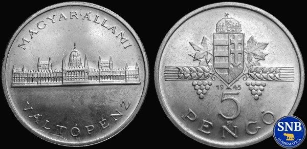 R/: Escudo de Hungría. Debajo: 5 / PENGŐ.
