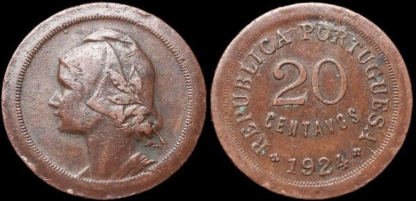 20 Centavos; 1924. Bronce