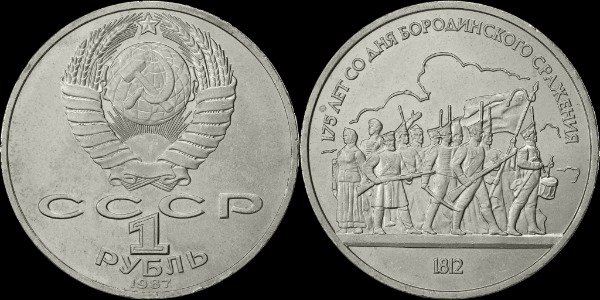 Moneda conmemorativa soviética, acuñada en los años finales de la Guerra Fría. Buen tamaño y precioso diseño, en el que se aprecia una parte del Monumento dedicado a M. Kutuzov erigido en Moscú.