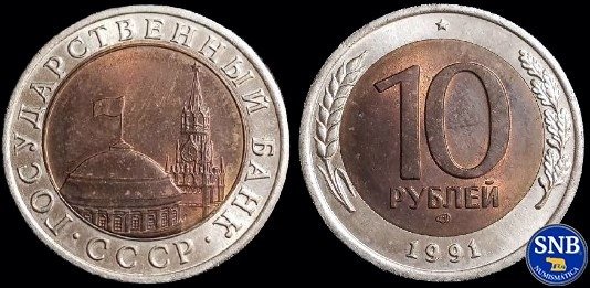 En 1991 la URSS acuñó monedas de 10 rublos (emisión del Banco del Estado) que empezaron a circular ya cuando el país había desaparecido — estas piezas se conocen como emisiones transicionales. Estas monedas eran bimetálicas (núcleo de bronce-aluminio y anillo de cuproníquel), con la inscripción “Gosudarstvenny Bank USSR” y fecha 1991. A pesar de llevar “СССР” como emisor, muchas de estas monedas se pusieron en circulación durante 1992, ya bajo los nuevos estados sucesores, siendo utilizadas temporalmente hasta su retiro.