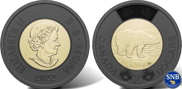 **Última moneda canadiense acuñada a nombre de Isabel II. La misma se acuñó con el anillo exterior en color negro con el objetivo de expresar luto y solemne tributo a la histórica soberana.**
