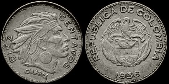 10 Centavos; 1956. Cuproníquel