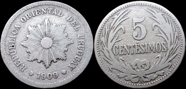 5 Centésimos; 1909. Cuproníquel