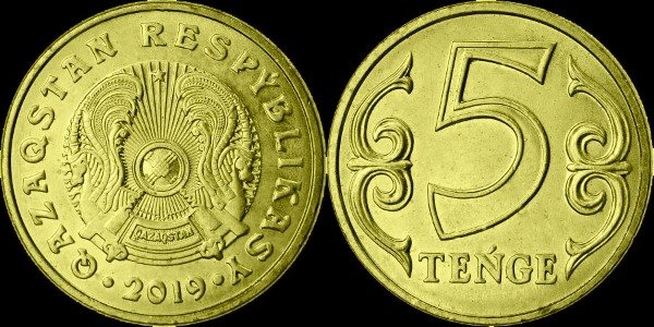 5 Tenge; 2019. Latón de níquel.