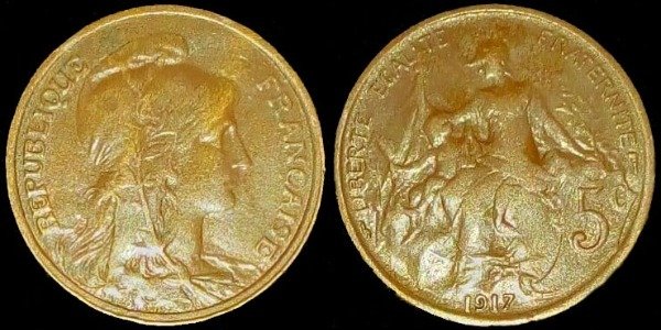 5 Céntimos; 1917. Bronce.