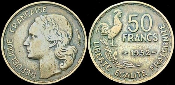 50 Francos (1952) - Cobre de aluminio.