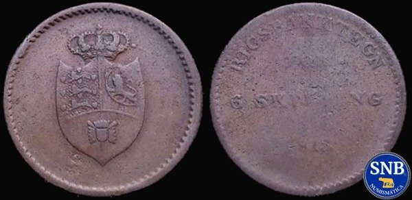 R/: RIGSBANKTEGN FOR 6 SKILLING 1813.