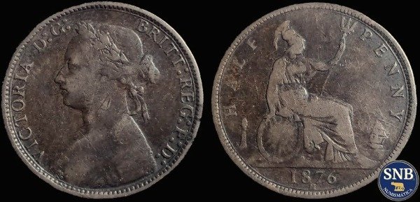 En anverso, busto laureado de Victoria a izquierda. En reverso, Britannia, tocada con yelmo, sentada a izquierda y sosteniendo tridente y escudo de la Unión.